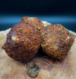 krokante kipschnitzel, gefrituurde uitjes, joppiesaus